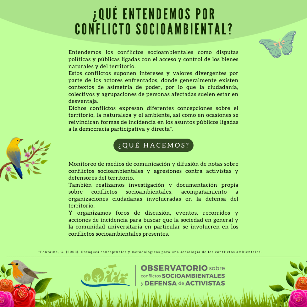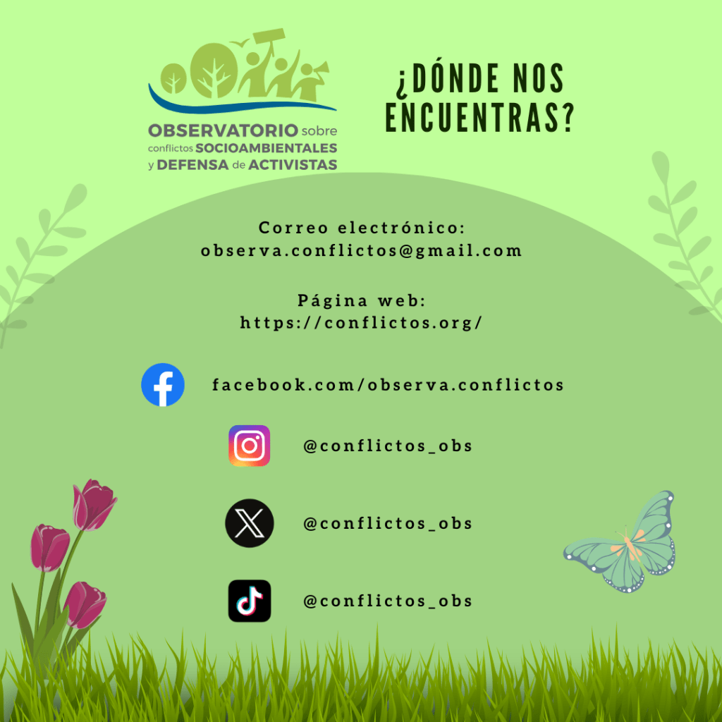 Somos el Observatorio sobre Conflictos Socioambientales y Defensa de Activistas.